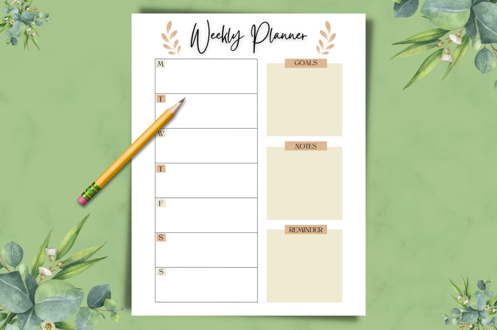 Weekly Planner Printable, Weekly Goal Planner