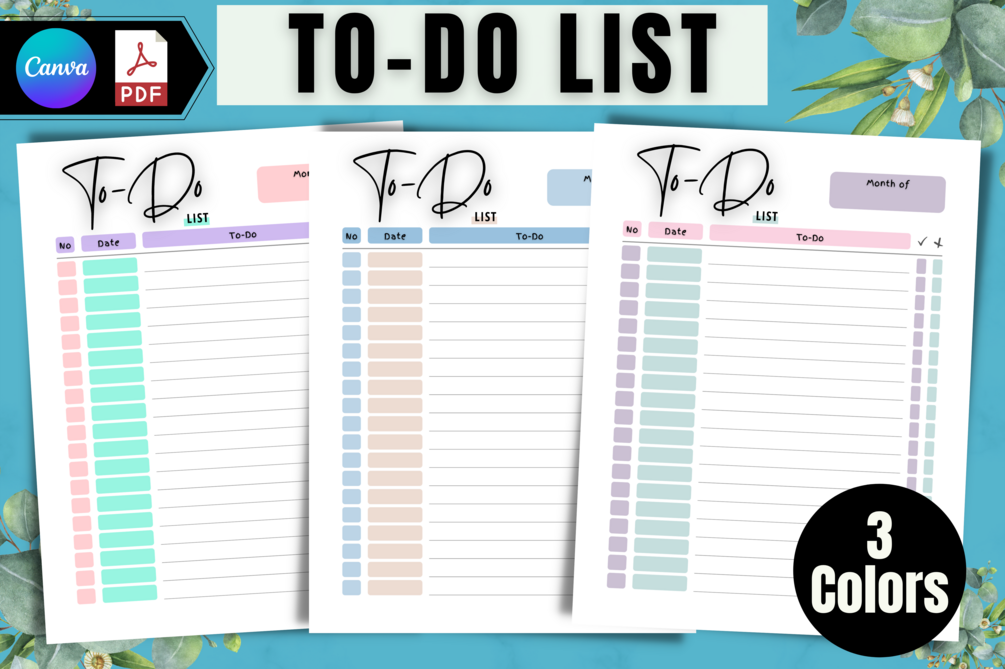 You'll get 1 To-Do List page (3 Different colors)